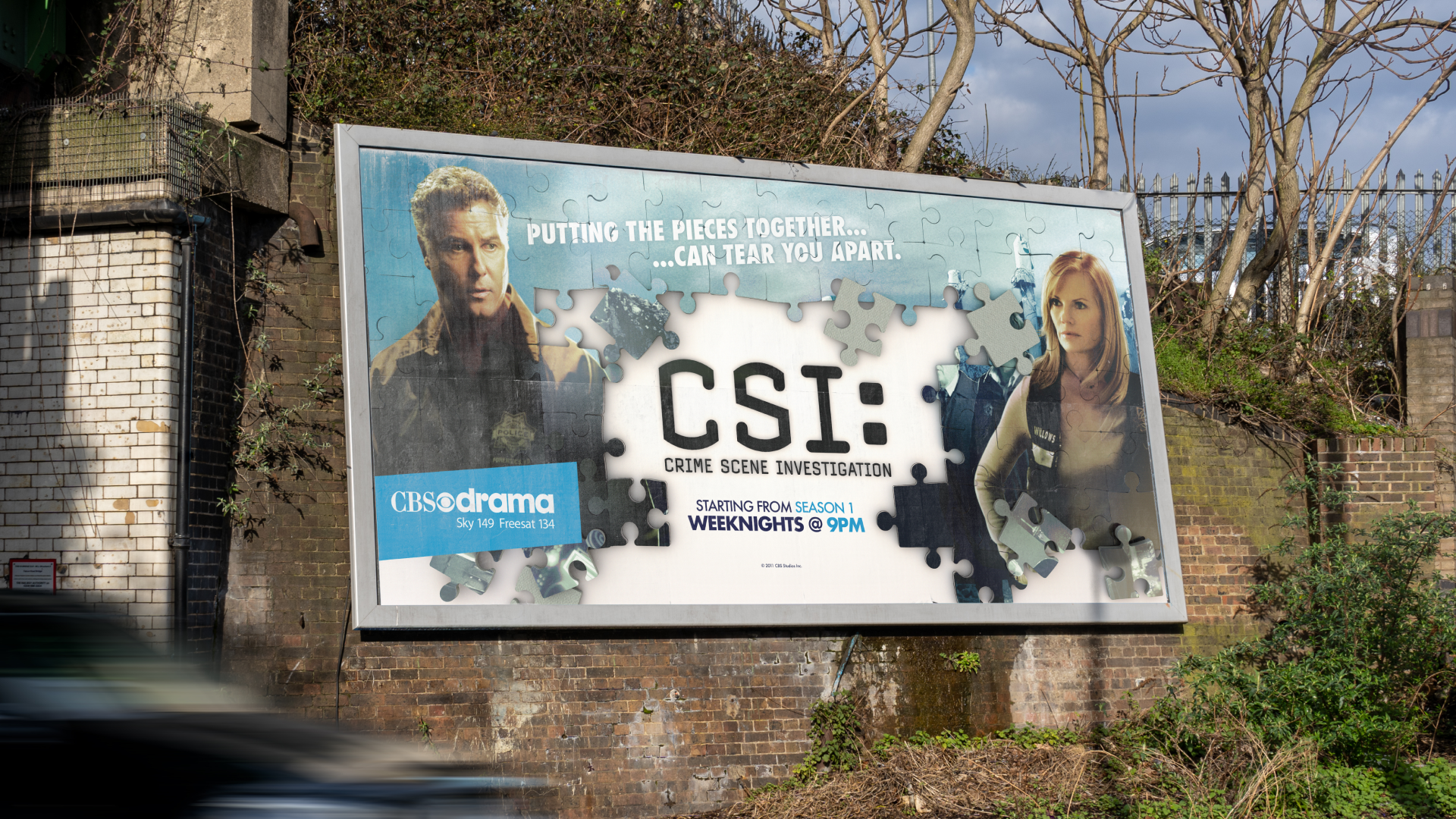 Collaborating closely with a small team at Studio Hansa, we developed a strikingly simple jigsaw concept to convey the overwhelming sense of fragmentation experienced by the characters in the popular US television drama "Crime Scene Investigation." This visual metaphor was extended into a nationwide outdoor advertising campaign in the UK. The tagline, "Putting the Pieces Together Can Tear You Apart," captures the tension viewers feel as they attempt to solve the unfolding mystery alongside the characters.